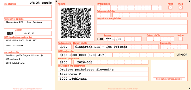Za plačilo članarine prek plačilnega naloga potrebujete naslednje podatke: